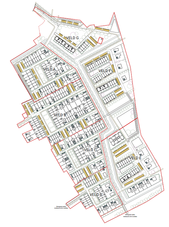 In het Veld wordt juist de rust en samenhang met de landschappelijke waaierende structuur gevonden door elke bebouwingsstrook een eigen ontwerp te geven. En de samenhang te vinden in een overwegend landelijke architectuur en een samenhangend palet van kleuren en materialen.