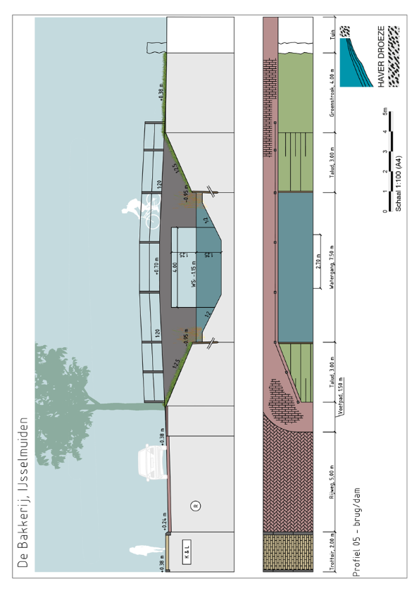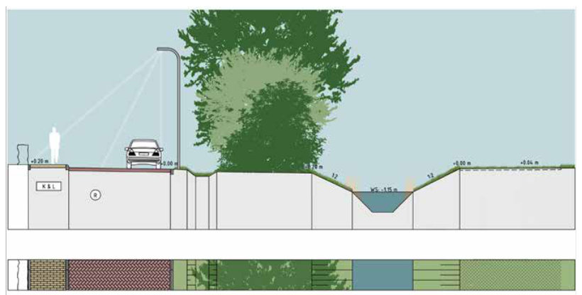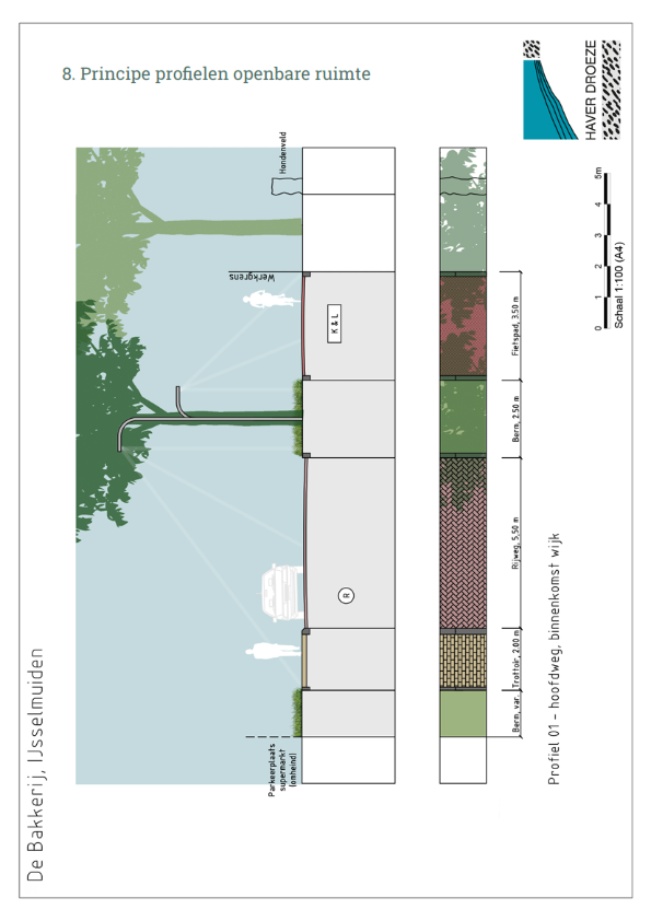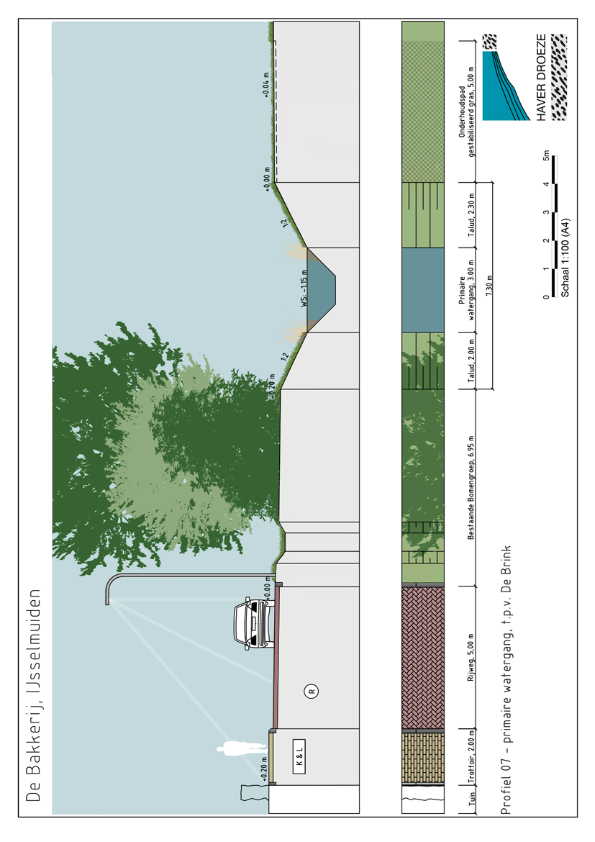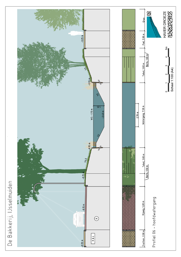 Profiel A: de hoofdontsluiting en nieuwe wetering (profiel 6 in bijlage)