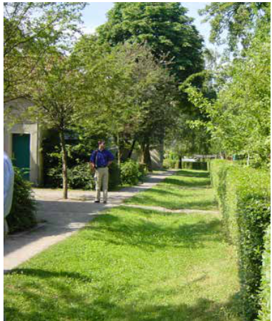 Losse bijgebouwen als bergingen, tuinhuizen en garages in de tuin zijn niet toegestaan. Ook een (overdekte) buitenruimte/terras maakt deel uit van het woningontwerp, bijvoorbeeld onder een doorgetrokken kap. Op deze manier wordt de (gemeenschappelijke) tuin maximaal groen ingericht waarbij verschillende soorten beplanting met verschillende hoogten wordt ingezet om plekken met privacy en meer open plekken te maken. Rond de drie plot vormt een natuurlijke erfafscheiding in de vorm van een schapenhek, wilgenscherm of gevlochten heg het uitgangspunt. Tussen de individuele kavels wordt beplanting ingezet als erafscheiding.