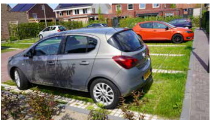 De parkeerkoffers krijgen een donkerder uitstraling van antraciete stenen, grasstenen met bomen voor groen en schaduw. De parkeerkoffers vormen zodoende een afgezonderd element, de rijlopers van de straatjes blijven herkenbaar.