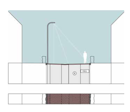 De aanleg en inrichting van nutskasten en pompinstallaties moet met aandacht gebeuren. Diepgroene kleuren van deze kasten en eventuele omheining zorgt dat deze functionele elementen terughoudend blijven binnen het openbare beeld.