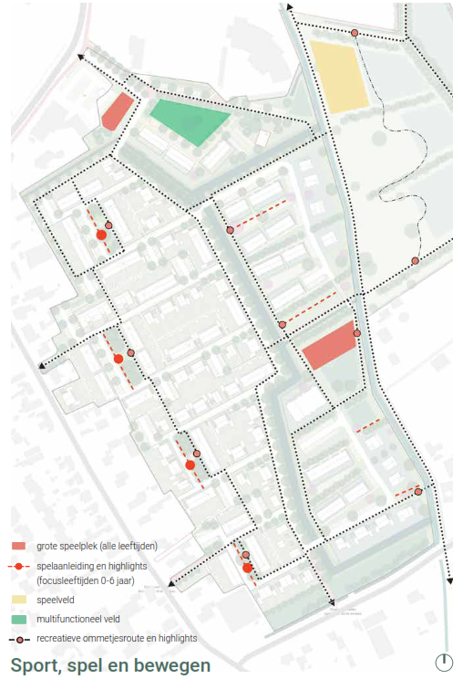 In het groene middengebied in het Veld komt een grote speelplek voor kinderen van alle leeftijden. Deze speelplek krijgt een natuurlijk karakter dat past bij de inrichting waarbij ook waterberging een plaats krijgt.