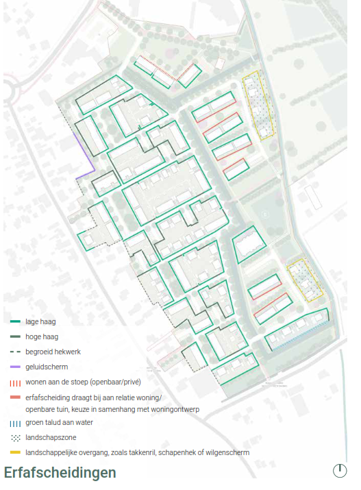 Op beeldbepalende plekken waar een zij- of achtertuin grenst aan het openbaar gebied, en privacy is gewenst, wordt een hoge haag toegepast. Wanneer een zij- of achtertuin grenst aan het openbaar gebied op een minder prominente plek kan ook een begroeid hekwerk worden toegepast.