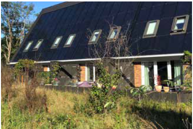 Aan de achterzijde grenzen de woningen aan aan een openbare tuin. Een met de woning mee ontworpen buitenruimte vormt hier het uitgangspunt. Dit kan een terras, vlonder of veranda-achtige ruimte zijn met voldoende privacy en een duidelijke overgang naar het groen, bijvoorbeeld met een lage rand, een kleine hoogteverschil en/of enkele treden.