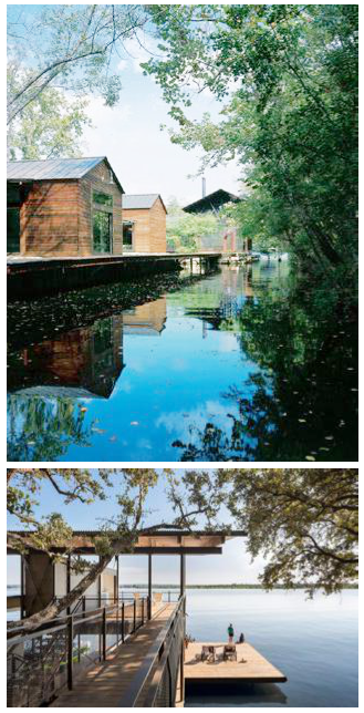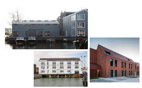 In deze voorbeelden zijn de aan- en uitbouwen onderdeel van de aansluiting met het water, binnen de architectonische logica van de woning als geheel. Dit is gedaan door toepassing van gelijke kleuren, vormen en gebouwopeningen.