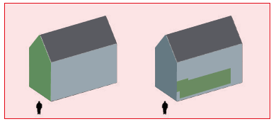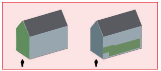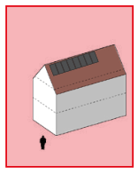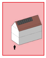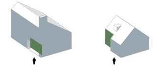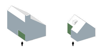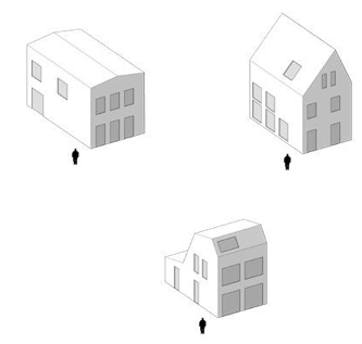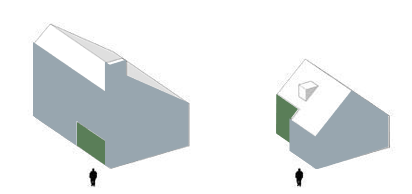 Voorbeelden van mogelijke eenduidige gebouwvormen met plat dak of zadeldak