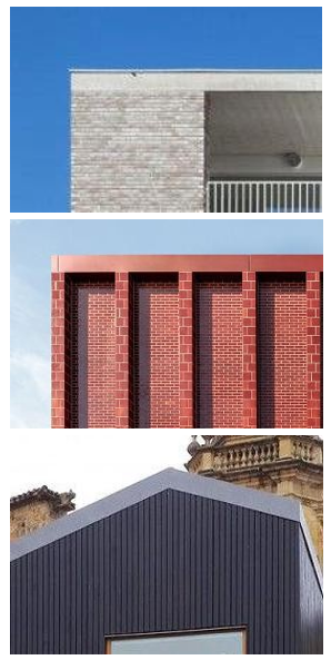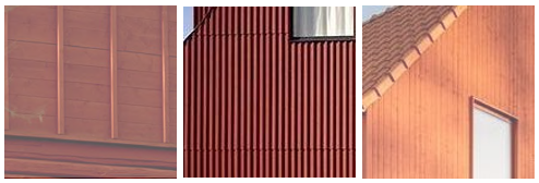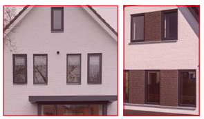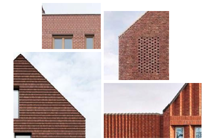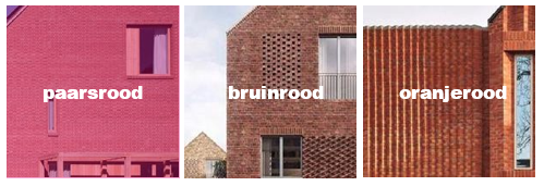 Strak gedetailleerd houtwerk of metalen platen in rode kleur. Bovenstaande voorbeelden beschrijven de uiterste tinten waarbinnen de kleur van het metselwerk ligt