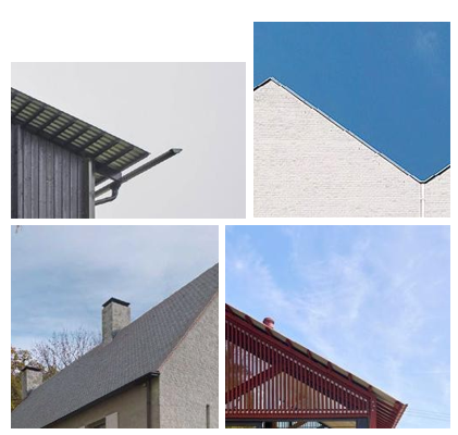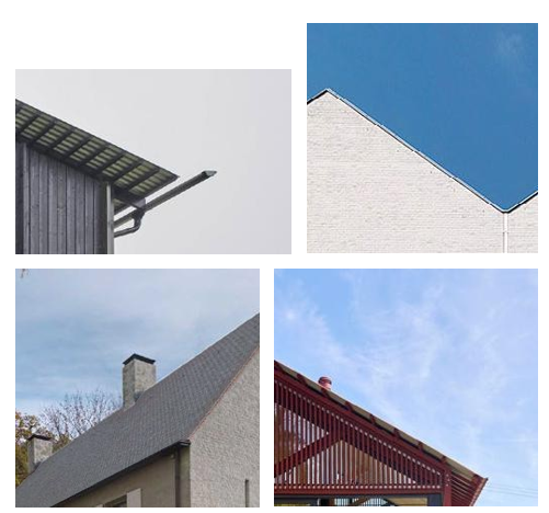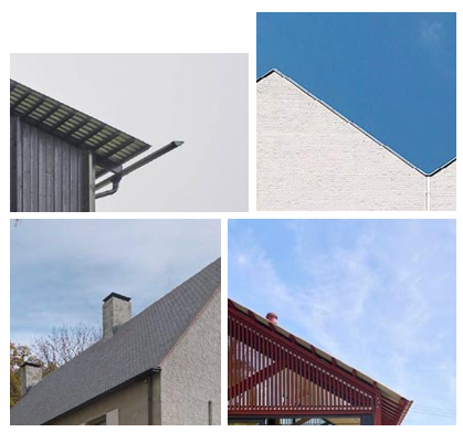 Voorbeelden van slanke, eigentijds gedetailleerde dakranden en dakgoten.
