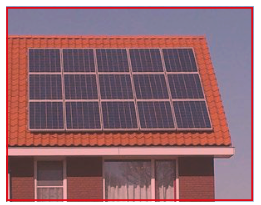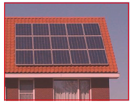 Geen blauwe PV-panelen of/en geen hoog kleurcontrast tussen dakbedekking en PV- panelen die duidelijk in het zicht liggen