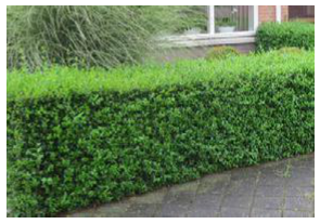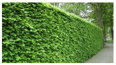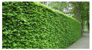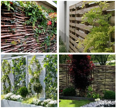 Voorbeelden van een levendige groene erfgrensafscheiding als alternatief voor een haag op een erfscheiding tussen privékavels: Een afrastering met een groene uitstraling, zoals bijvoorbeeld een natuurlijk begroeide open houten schutting of een wilgenscherm/hazelaarscherm.