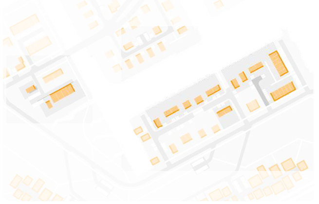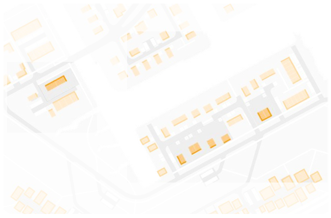 Voorbeelden van gebouwvolumes met ritmische maar gevariëerde gevelindeling