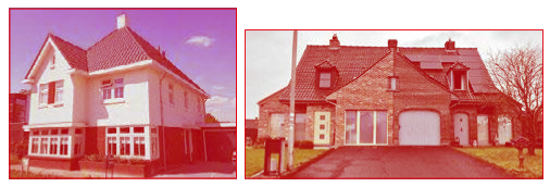 Metselwerkstenen in rode kleur. Bovenstaande metselwerkvoorbeelden beschrijven de uiterste tinten waarbinnen de kleur van het metselwerk ligt