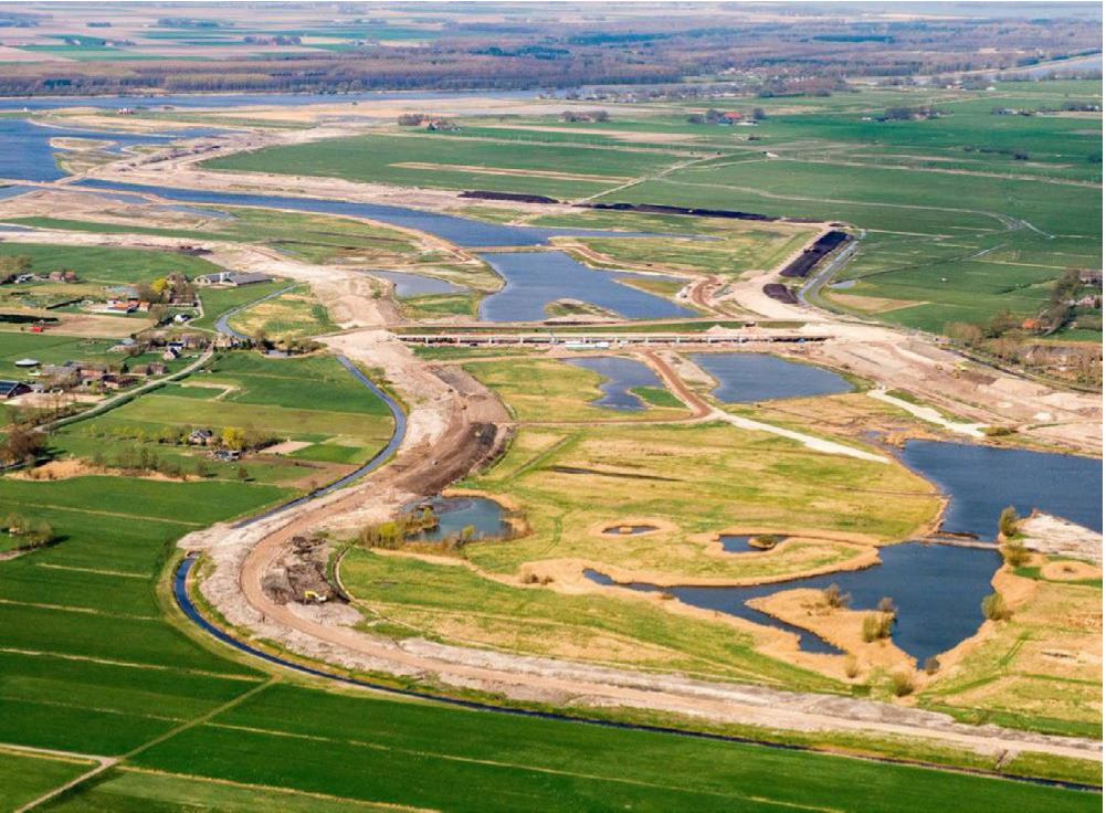 Aan de zuidzijde van de weg ligt de klimaatdijk. Een open ‘landschappelijk in gericht dijklichaam, met kenmerkende compacte bouwclusters erop.