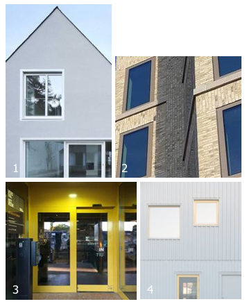 Alternatief: kozijndetails worden verbijzonderd. Door maat, ritme of kleur gaan de kozijnen een relatie aan met de architectuur