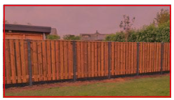 Alternatief voor haag op erfscheiding tussen privékavels rijwoningen: erfscheiding bestaat uit een natuurlijk begroeide houten afrastering