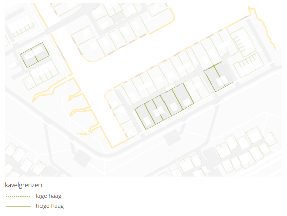 hoge hagen worden toegepast als erfafscheiding ter plaatse van de achtertuinen conform het inrichtingsplan openbare ruimte