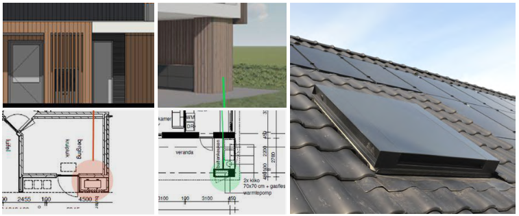 Installaties zoals buitenunits van warmtepompen en airco’s vormen integraal onderdeel van het ontwerp