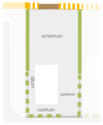 schematische weergave kavelinrichting achtererf rijwoningen: