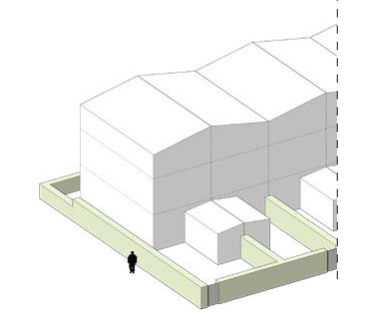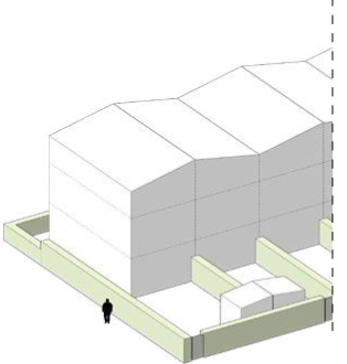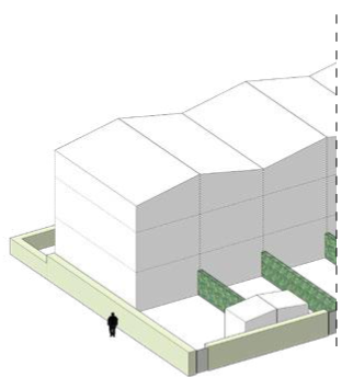 De schuurwoningen krijgen een eigentijdse en innovatieve uitstraling. Hierbij past een abstract en minimalistisch volume. Het mag refereren naar een werkschuur, dus ook een ‘werkzame’ uitstraling hebben. Dit wordt bereikt door de toepassing van grote poortachtige sparingen/motieven in de gevel op de begane grond. Een gevel kan helemaal open zijn, sparingen/kozijnen kunnen terug liggen, of juist uitsteken. In het dakvlak worden juist kleine, onopvallende sparingen gemaakt. Daarmee blijft het volume abstract en opgeruimd. De kopgevels laten ruimte voor diverse invullingen, van helemaal gesloten tot meer openwerken. Het gevelmateriaal van de langs gevel wordt hier wel doorgezet voor de gesloten vlakken.