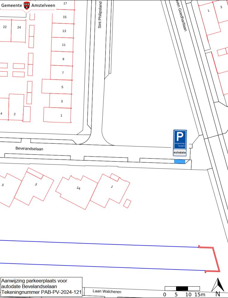 Burgemeester en wethouders van Amstelveen besluiten daarnaast om in de straat Laan Walcheren een parkeerplaats aan te wijzen als belanghebbendenplaats voor het parkeren door vergunninghouders voor autodate.