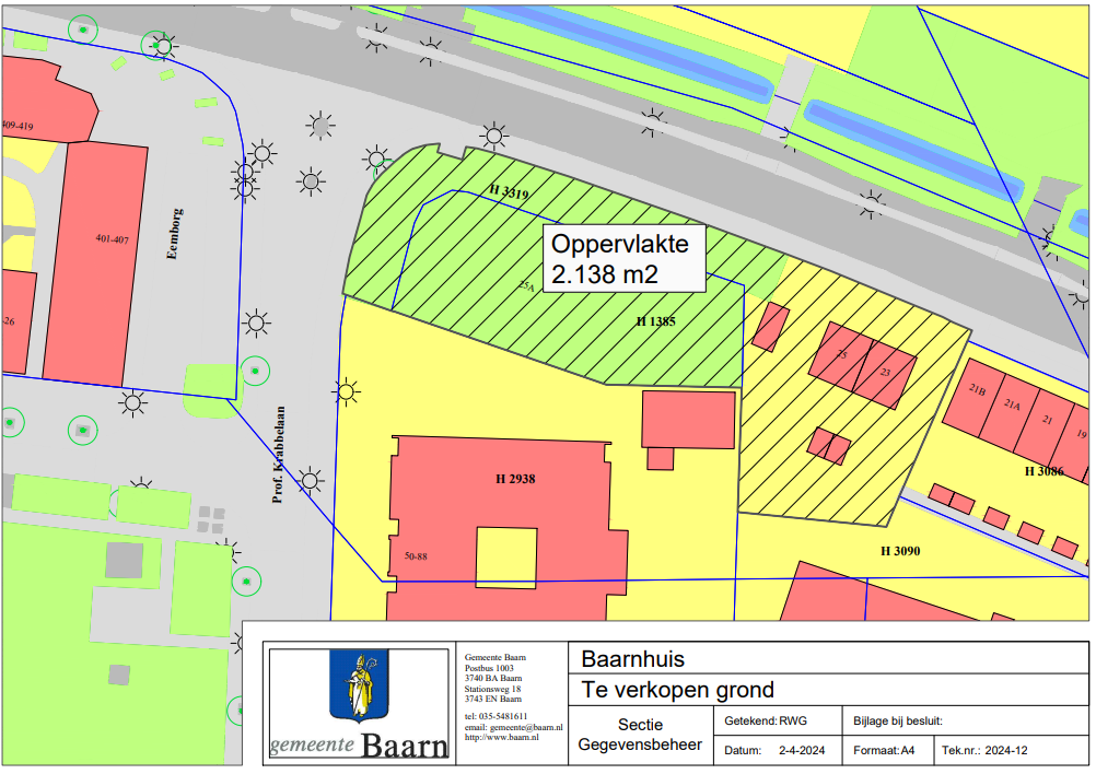 Voorgenomen verkoop gemeentegrond op de hoek Drakenburgerweg en Professor Krabbelaan door de gemeente Baarn.