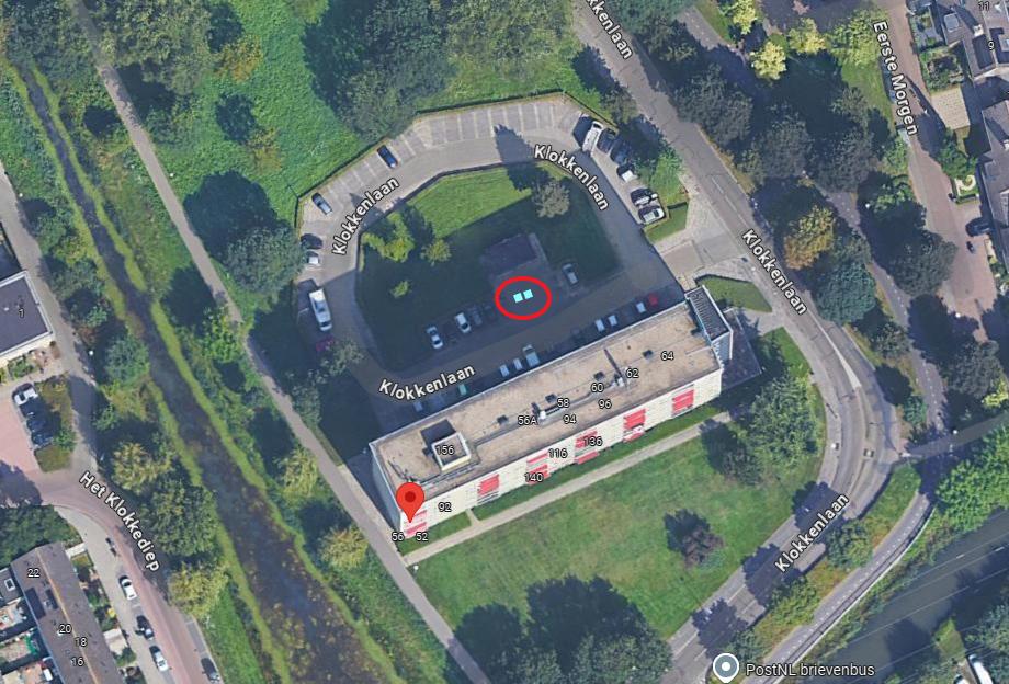 Locatie: Klokkenlaan 50-156, voor plaatsing papier- en restcontainer