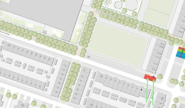 Trompetbloemlaan (tegenover de huisnummers 2 en 4; wegvak tussen Veldbloemlaan en Passiebloempad)