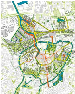 Deze ruimte gebruiken we intensief met de bouw van meer dan 10.000 woningen en daarbij behorende sociaal-maatschappelijke voorzieningen. Gecombineerd met werkgelegenheid passend bij ons economisch profiel van toepaste technologie en creativiteit (TT&C) en regionale voorzieningen in hoge dichtheid. Zo breiden we het centrum uit. We realiseren hier hoogstedelijke en verschillende vestigingsmilieus en geven Breda een meer internationaal karakter. Hier combineren we veel verschillende functies, ontmoet je elkaar op loopafstand en zijn er goede verbindingen met de rest van de wereld. De leefomgeving van het centrum is en wordt echt anders dan de rest van Breda.