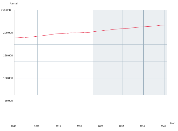 De verwachting is dat het aantal huishoudens groeit van 90.000 (2024) naar 103.000 in 2040. Een groei van 14%. Het aantal huishoudens neemt naar verhouding meer toe dan het aantal inwoners. Vooral het aantal alleenstaanden groeit, dit noemen we huishoudensverdunning.