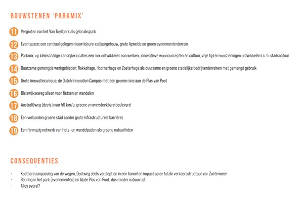 Nieuwe (dwars)verbindingen tussen de verschillende gebieden wenselijk/noodzakelijk zijn (RandstadRail, station Lansingerland-Zoetermeer, Oosterheem met station en stadscentrum, langzaam verkeerroutes);