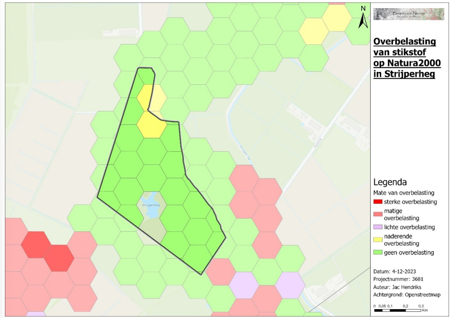 Figuur 9 Overbelasting van stikstof op de habitattypen in deelgebied Strijperheg.