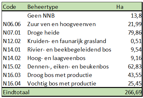 Tabel 3 De totale oppervlaktes van de verschillende beheertypen uit het Natuurbeheerplan zoals weergegeven in figuur 16.