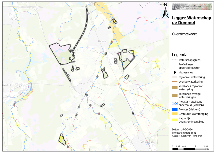 Figuur 18 Kaart met de legger Waterstaatswerken 2023 van Waterschap de Dommel.