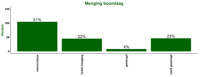 Hier wordt gestreefd naar het verkrijgen van een gemengd robuust en klimaatbestendig bos met inheemse (loof)boomsoorten. Het aandeel loofbomen met rijk strooisel neemt toe waardoor de strooiselafbraak verbeterd. Er is veel variatie aanwezig in de leeftijden van de bomen. Er zijn enkele open plekken aanwezig, bijvoorbeeld als gevolg van windval (ca. 5% van de oppervlakte). De struiklaag is goed ontwikkelt en bied dekking voor vogels en zoogdieren. Het aandeel dood hout neemt steeds verder toe naarmate het bos ouder wordt. Invasieve exoten zijn niet dominant aanwezig.