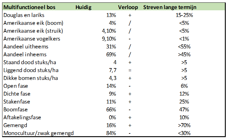 Tabel 6 Tabel met de huidige kenmerken en met de na te streven kenmerken binnen de multifunctionele bossen
