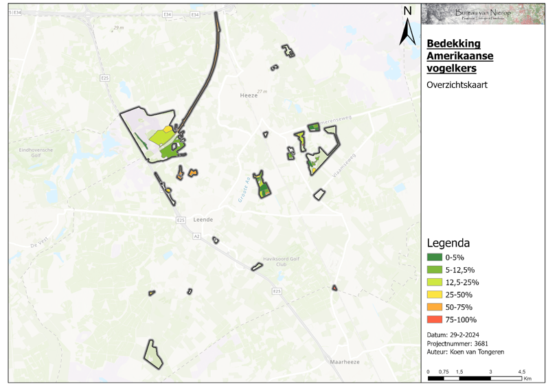 Figuur 42 Kaart met de bedekking van Amerikaanse vogelkers