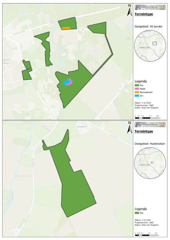 In beide deelgebieden zijn verschillende habitattypen aanwezig (figuur 12 &13). Het geldende beleidskader is het in 2017 opgestelde beheerplan van het Natura 2000 gebied (Provincie Noord-Brabant, 2017). De doelstellingen hebben betrekking op de habitattypen en doelsoorten. Voor de natuurterreinen gelegen binnen het Natura 2000-gebied gelden instandhoudingsdoelstellingen voor de aanwezige habitattypen: