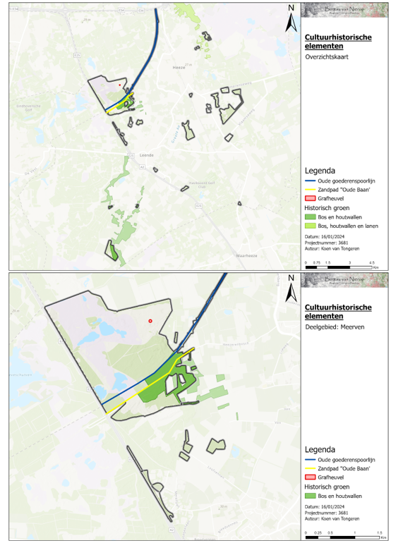 Enkele stukken bos vallen onder “historisch groen” volgens de Cultuurhistorische Waardenkaart (figuur 40). Een van deze gebieden is het gebied “Bos en houtwallen Heezerven”, gelegen in deelgebied Meerven. Dit betreft bos met houtwallen en plaatselijk hakhout wat dateert uit ongeveer 1850 tot 1920. Het ligt op de grens van een oude akker en stuifzand.