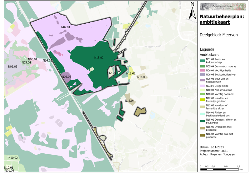 Op lange termijn wordt het bos in het centrum van de heide ten noorden van het Diepe Meerven en het Drooge Meerven worden omgevormd naar heide. Dat is ook doeltype op de ambitiekaart op deze plek. Dit komt de kwaliteit van de inliggende en aangrenzende vennen ten goede komen en het betekent een uitbreiding van het habitattype stuifzandheide.