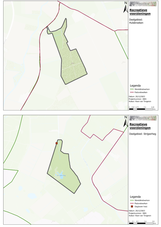 De bossen bij de Strijperheg kennen hoge waterstanden en er loopt geen pad door de bossen. Het gebied is een rustgebied waar vogels kunnen broeden. Er vindt geen recreatie plaats.
