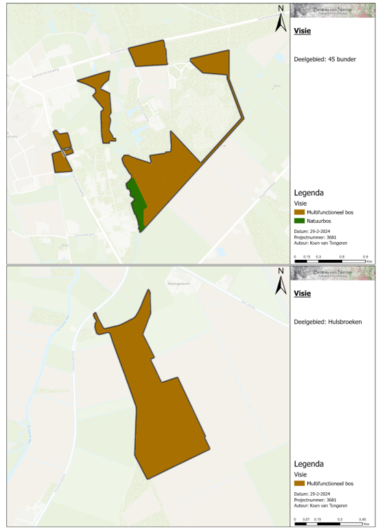 Er is ruimtelijke ingeving gegeven aan de doelstellingen door een visiekaart op te stellen. Hierbij wordt een onderscheid gemaakt tussen natuurbos, multifunctioneel bos en natuurterrein. Daarnaast zijn er rustgebieden aangewezen waarbinnen recreatie niet mogelijk is en zijn er gebieden aangewezen waarbinnen intensieve recreatie wel mogelijk is.