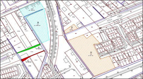 Perceel A betreft een gedeelte van circa 200 m2 van het bij de Gemeente in eigendom zijnde perceel, kadastraal bekend gemeente Aalsmeer, sectie C, nummer 6704 voor het realiseren van een terreinontsluiting.