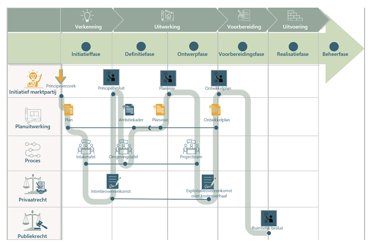 Dit hoofdstuk beschrijft het proces om het plan in te dienen bij de gemeente en welke voorwaarden hier aan zijn verbonden en de twee sporen die doorlopen kunnen worden voor de ontwikkeling van een ruimtelijk initiatief.