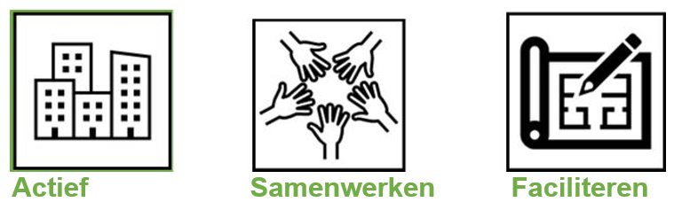 Bij deze strategie is het niet noodzakelijk om een grondpositie in te nemen. Omdat het initiatief en de verantwoordelijkheid bij de marktpartij liggen, nemen we geen nieuwe grondposities of vastgoedaankopen in overweging om het proces eventueel te versnellen.Bij de strategie Faciliteren past bij onze rol als facilitator :
