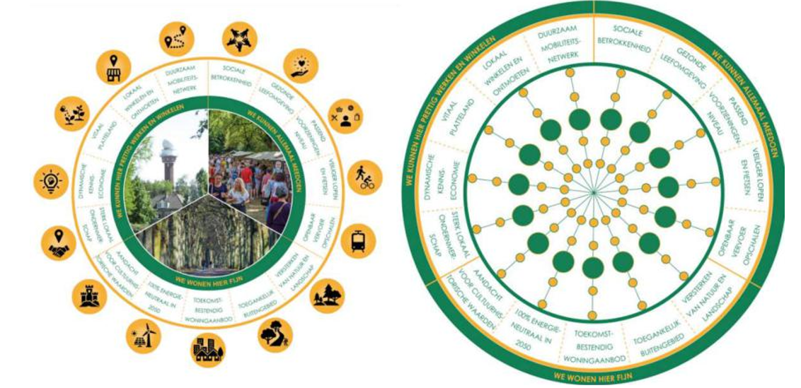De belangrijkste doelstellingen en ambities van de gemeente De Bilt zijn opgenomen in een Rad van de Leefomgeving. Dit Rad vormt het uitgangspunt voor nieuwe projecten, initiatieven, beleid, bestuurlijke rapportages, monitoring, enzovoort. Hieronder staat een schematische weergave van het Rad; de doelstellingen en ambities zijn opgenomen in de omgevingsvisie.