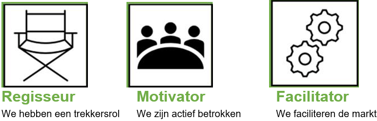 Als motivator zijn we actief en betrokken bij de ontwikkeling. We geven duidelijk aan wat het gewenste eindresultaat is. We dagen en stimuleren marktpartijen om de gebiedsontwikkeling aan te pakken. Hoewel we geen leidende rol hoeven te vervullen, zolang de ontwikkeling voldoende voortgang boekt, dragen we als motivator een gedeelde verantwoordelijkheid voor de voortgang. De marktpartij neemt de verantwoordelijkheid voor de ontwikkeling zelf op zich.