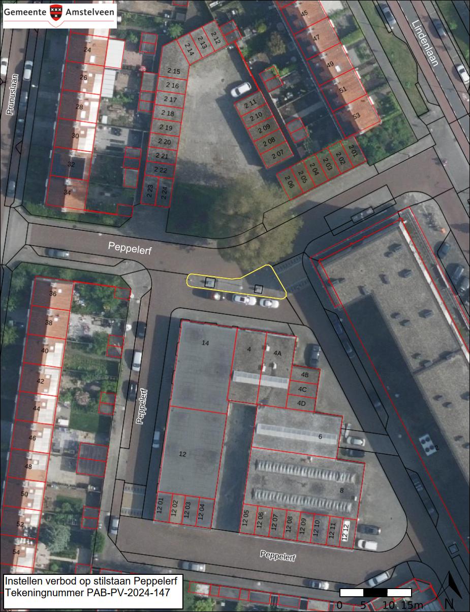 Burgemeester en wethouders van Amstelveen besluiten om een verbod op stilstaan in stellen aan de noordzijde van Peppelerf, rondom een middeneiland met ondergrondse containers, zoals aangegeven op tekening PAB-PV-2024-147.