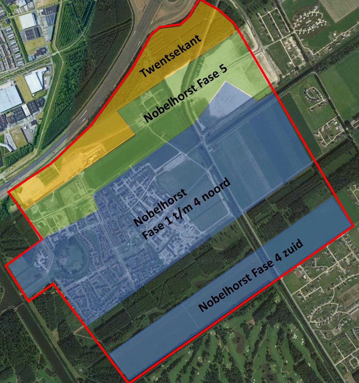 Nobelhorst fase 5 bevindt zich tussen de bestaande woonwijk in Nobelhorst en de A6.