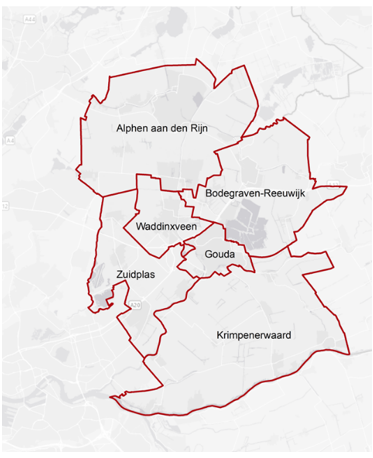 Zo heeft Gouda veel monumenten en een levendige horeca, Alphen aan den Rijn veel industrie en transportbedrijven en wordt de Krimpenerwaard vooral gekenmerkt door agrarische bedrijvigheid. In Zuidplas is er veel glastuinbouw, in Waddinxveen zijn veel logistieke bedrijven, terwijl er in Bodegraven-Reeuwijk veel agrarische bedrijven en een flink industrieterrein zijn en een groot recreatie-gebied, namelijk de Reeuwijkse Plassen.