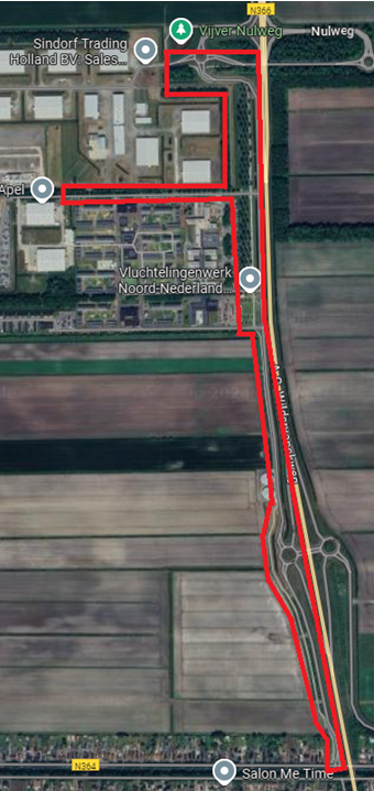 Het gebied gelegen tussen de rotonde Ter Apelervenen/Nulweg en de Westerstraat in Ter Apel, zoals in de bijlage tussen de rode lijnen.